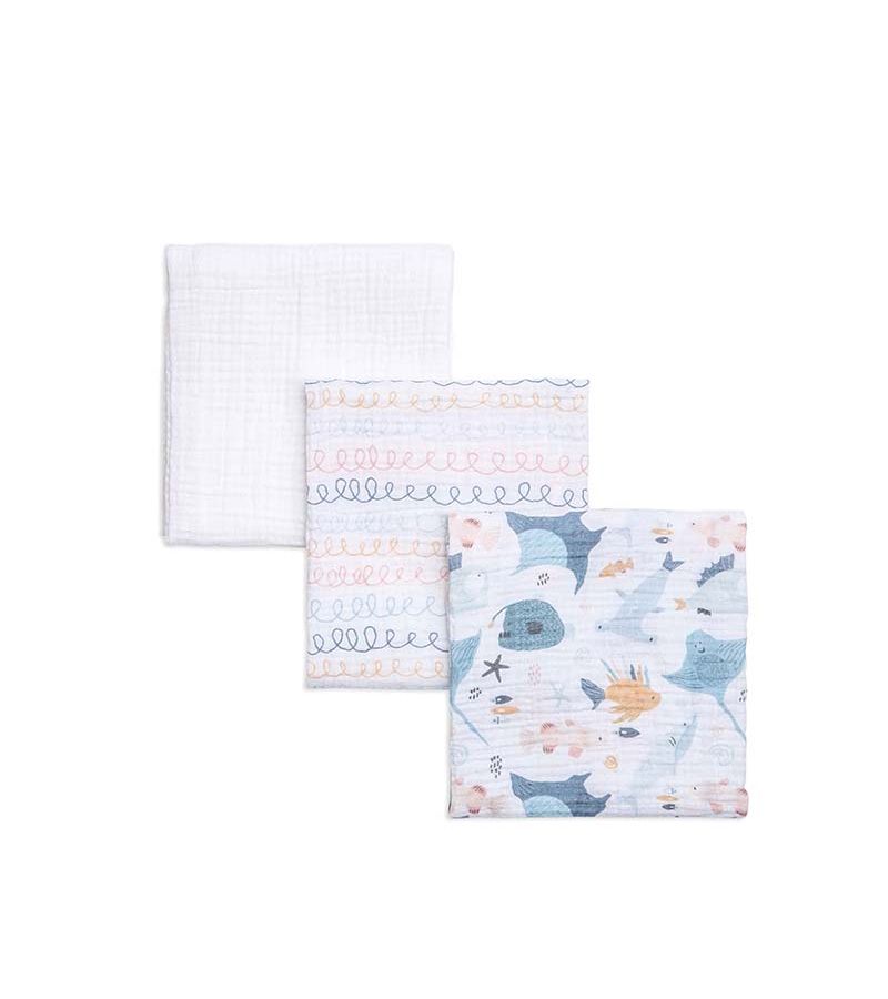 Σετ 3 τμχ υπέροχες βαμβακερές μουσελίνες από την FUNNA BABY σε σχέδιο "Atlantiko".