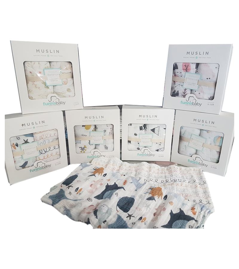 Σετ 2 τμχ υπέροχες βαμβακερές μουσελίνες από την FUNNA BABY σε σχέδιο "Unicorn".