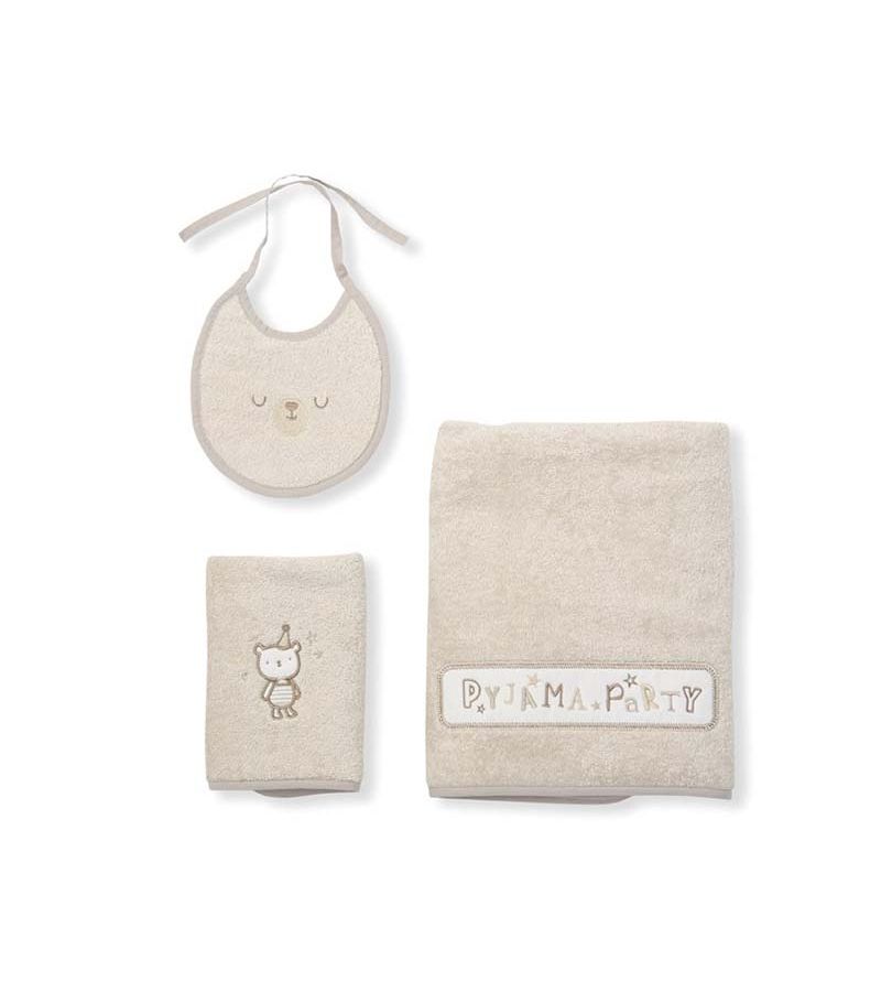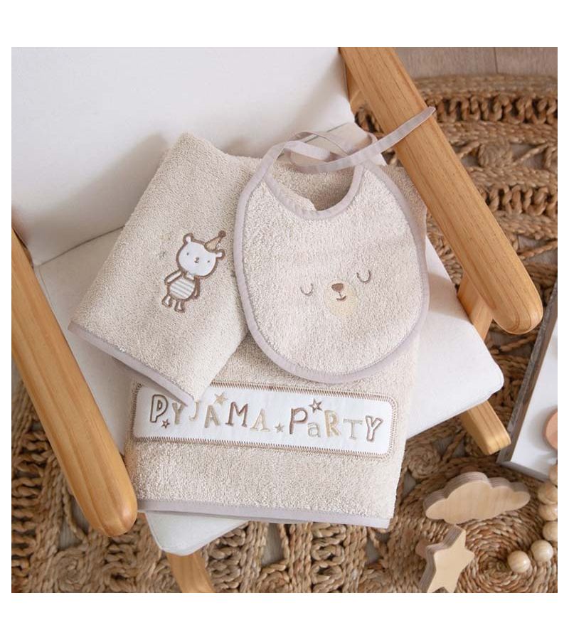 Οι βαμβακερές πετσέτες Pyjama έχουν μοντέρνο μπεζ χρώμα και υπέροχο κεντητό μοτίβο που θα λατρέψει το μικρό σας!