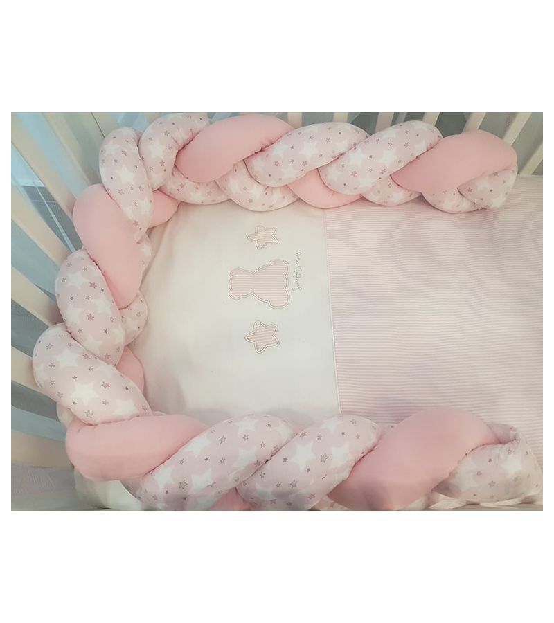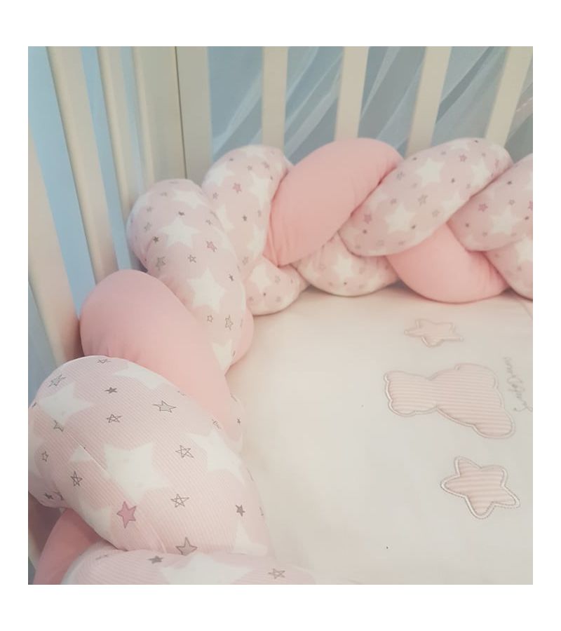 H πάντα - πλεξίδα σχεδίου "Ροζ Αστέρια" προστατεύει το μικρό σας από τα κάγκελα της κούνιας ή τον τοίχο. Είναι κατάλληλη για λίκνο, κούνια και μπορεί να χρησιμοποιηθεί και ως φωλιά ύπνου για βρέφη. Διαθέτει εξαιρετικά υπέροχη βαμβακερή υφή.