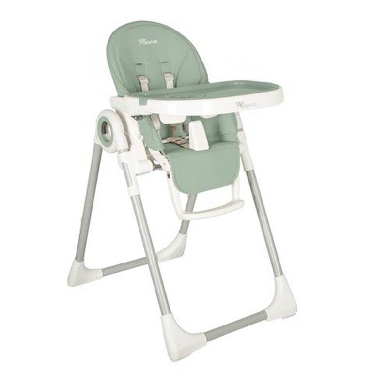 Καρέκλα φαγητού της εταιρείας BABY ADVENTURE με ύφασμα καθίσματος από δερματίνη σε χρωματικούς τόνους της μέντας κατάλληλη για παιδιά ηλικίας 6-36 μηνών.