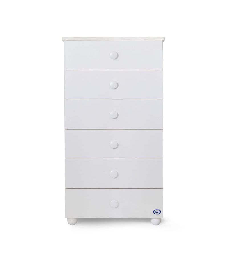 Συρταριέρα με 6 συρτάρια που συμπληρώνει τη συλλογή Pali Eco σε σικάτο λευκό χρώμα.