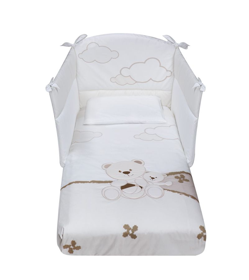 Tο σετ προίκας Pali Daisy διαθέτει υπέροχο κεντητό σχέδιο με χαρούμενα αρκουδάκια σε γήινους χρωματικούς τόνους που ταιριάζει με τα περισσότερα βρεφικά δωμάτια!