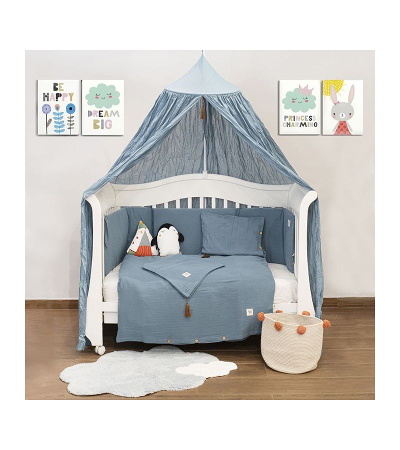 Σετ προίκας μωρού Μουσελίνα FUNNA BABY Province Petrol (σετ παπλωματοθήκης + κουνουπιέρα + πάντα)