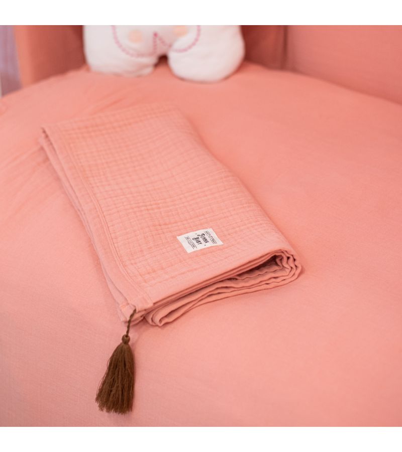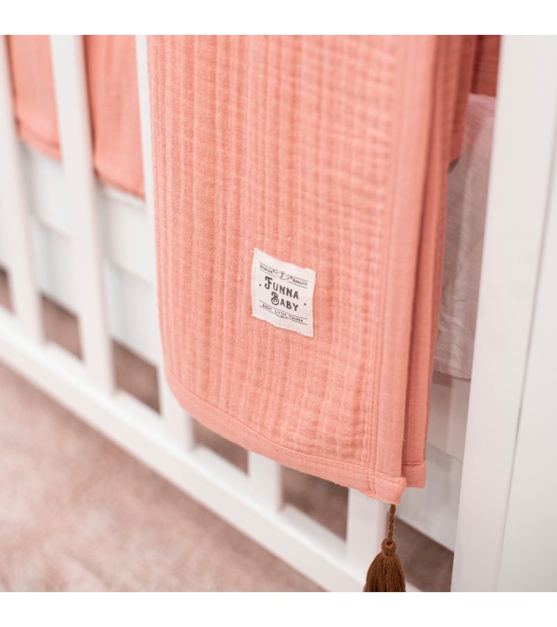 Σετ προίκας μωρού Μουσελίνα FUNNA BABY Coral Pink (σετ παπλωματοθήκης + κουνουπιέρα + πάντα)