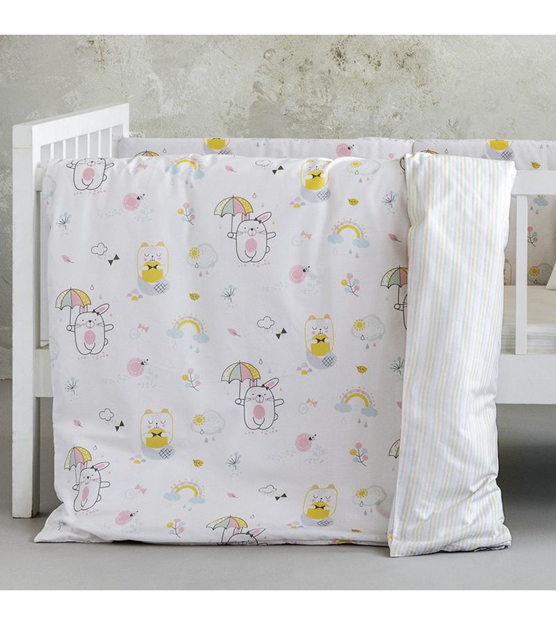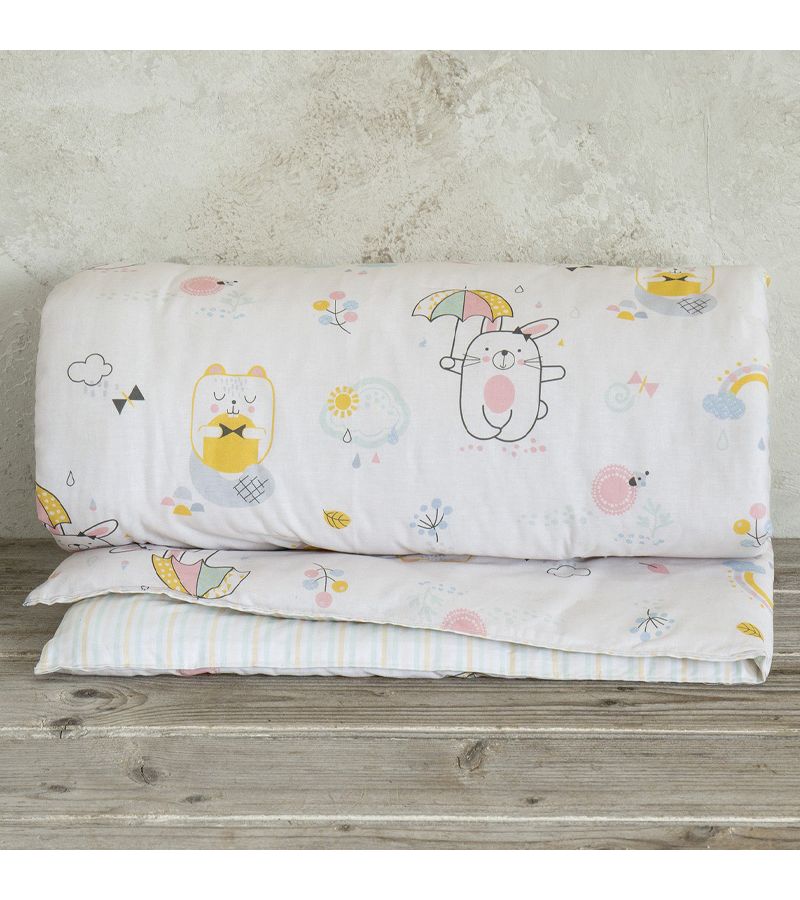 Βαμβακερό Κουβερλί κούνιας διπλής όψεως με πολύχρωμα σχέδια.