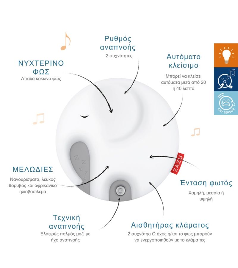 ZAZU Συσκευή Ύπνου με Τεχνική Αναπνοής, Κόκκινο Φως & Λευκούς Ήχους Emmy το Ελεφαντάκι ZA-EMMY-01