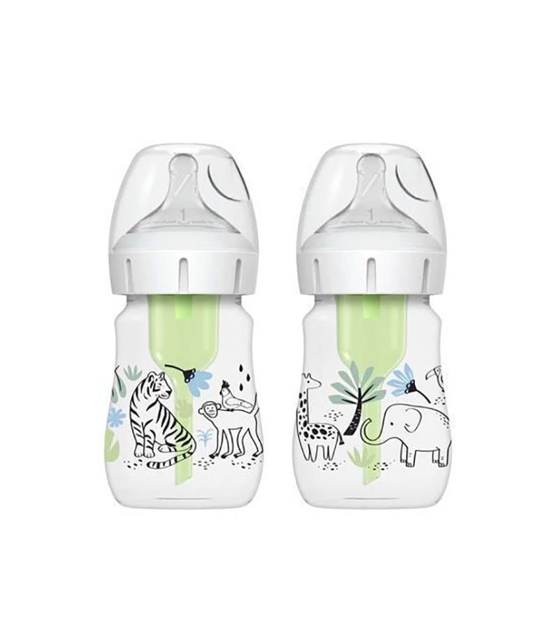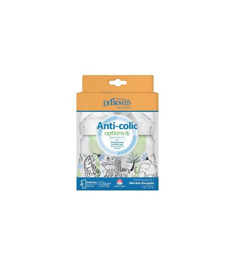 Μπιμπερό πλαστικό με φαρδύ λαιμό DR BROWN'S Options + 150ml 2 τεμ WB52014 Ζούγκλα 0+ μηνών
