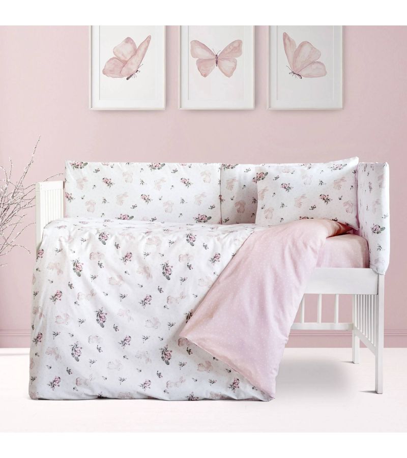 Σετ κούνιας από 100% Cotton 144 κλωστών, αποτελούμενο από 2 σεντόνια (κατωσέντονο με λάστιχο - πανωσέντονο και μαξιλαροθήκη).