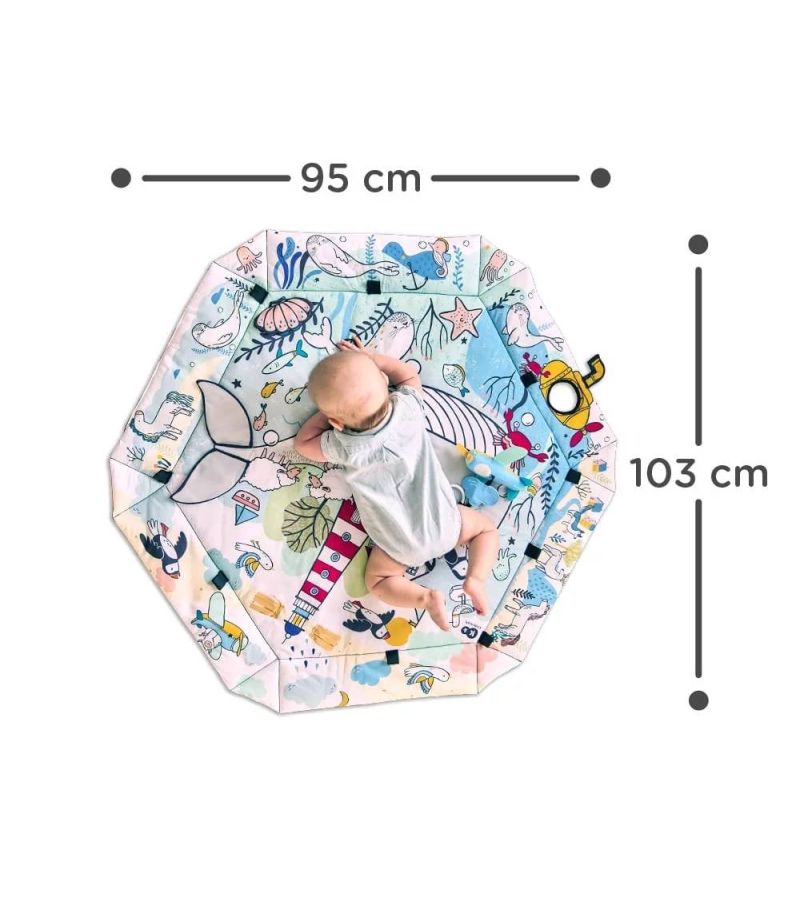 Εκπαιδευτικό χαλάκι με πολλές δραστηριότητες που αναπτύσσουν τις αισθήσεις της αφής, της όρασης και της ακοής.