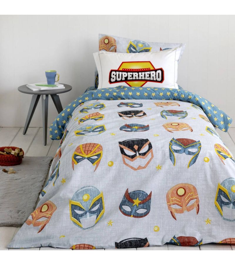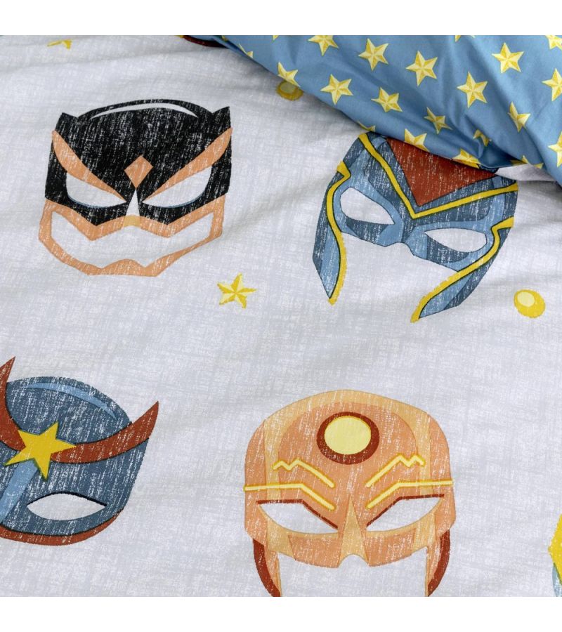 Το σετ βαμβακερής παπλωματοθήκης Superheroes έχει μάσκες υπερηρώων σε έντονα χρώματα
