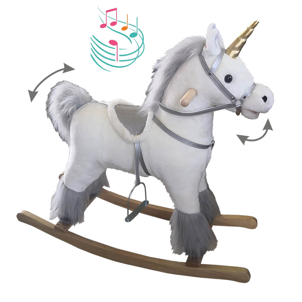O κουνιστός μονόκερος τραγουδάει ανοιγοκλείνοντας το στόμα του και κουνώντας την ουρά του!