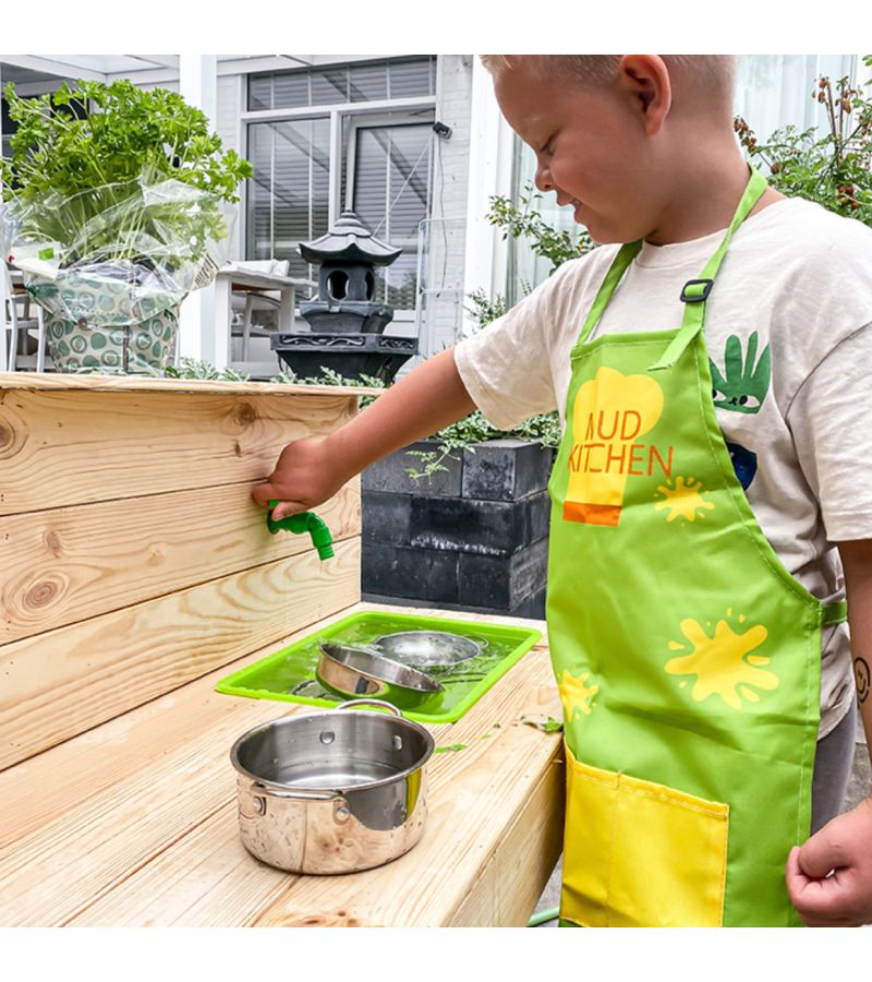 Η ποδιά είναι υδατοαπωθητική, ιδανική για τις περιπέτειες στη λάσπη και το νερό!