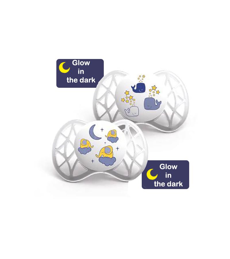 Ορθοδοντική Πιπίλα σιλικόνης 2τμχ με προστατευτικό κάλυμμα θηλής 0m+ NUVITA 7063 Air55 Glow White NU-ALPF0009