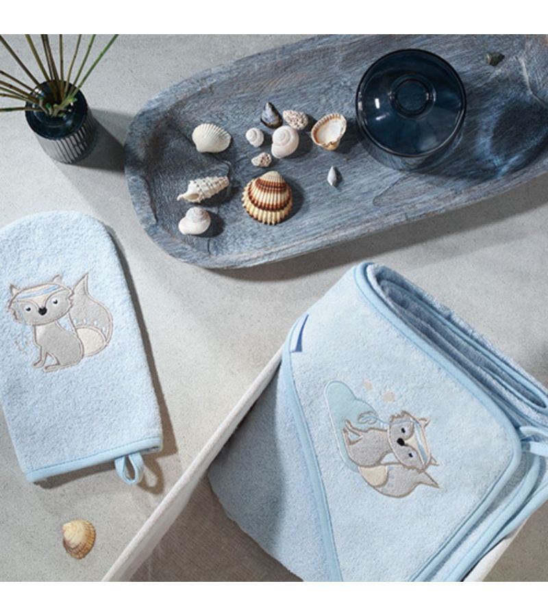 Γαντάκι πλυσίματος μωρού από Μπαμπού Babyono Μπλε με κέντημα 12x22cm BN347/08