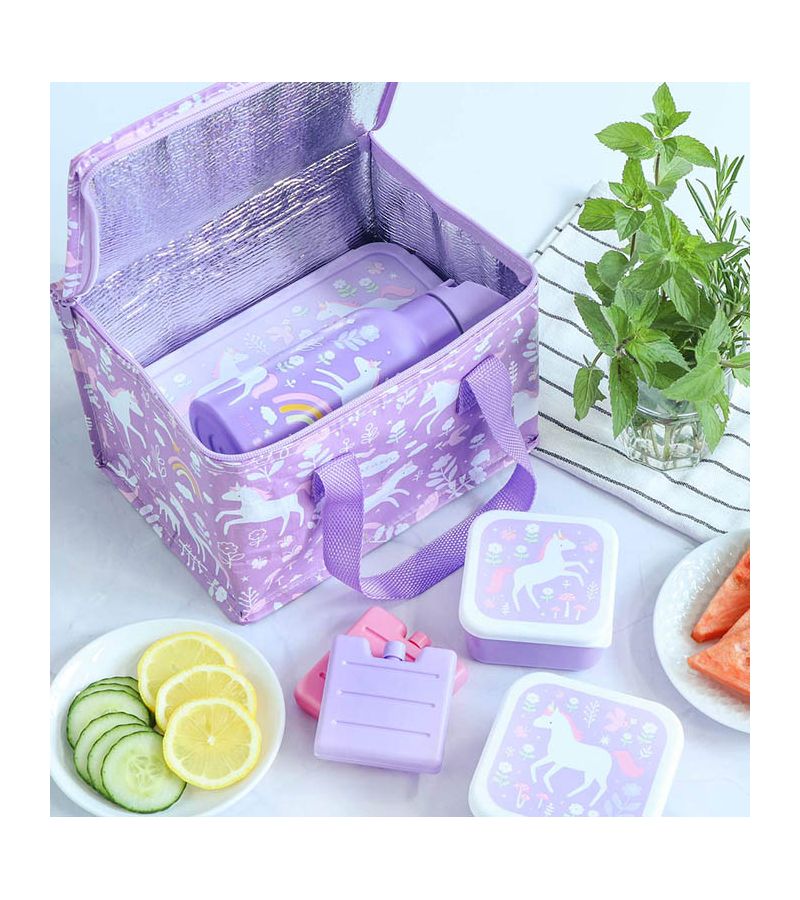 A LITLE LOVELY COMPANY Τσαντάκι μεταφοράς φαγητού 23x16x16 - Unicorn dreams CBUDPU26