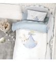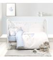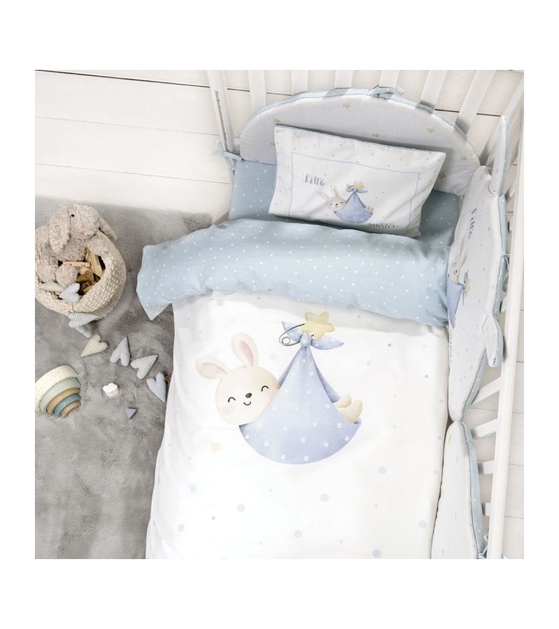 Βρεφικό σετ βαμβακερών σεντονιών Little Mister με μαξιλαροθήκη, 100% cotton απαλό και ανθεκτικό. Χαριτωμένο πάνελ σχέδιο με νεογέννητο λαγουδάκι σε απαλό γαλάζιο και λευκό για τρυφερό και ήρεμο ύπνο.