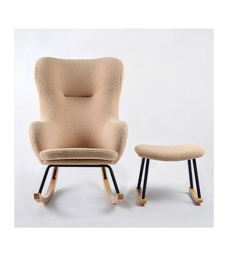 Η Baby Adventure Κουνιστή Πολυθρόνα Θηλασμού Teddy Beige προσφέρει άνεση, εργονομία και στυλ, με μαλακό ύφασμα teddy, ξύλινη βάση και υποπόδιο, ιδανική για τη δημιουργία μιας ήρεμης ρουτίνας θηλασμού.
