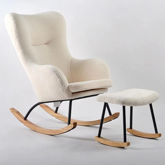 Η Baby Adventure Κουνιστή Πολυθρόνα Θηλασμού Teddy Cream προσφέρει άνεση, εργονομία και στυλ, με μαλακό ύφασμα teddy, ξύλινη βάση και υποπόδιο, ιδανική για τη δημιουργία μιας ήρεμης ρουτίνας θηλασμού.