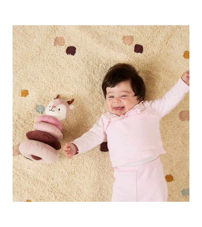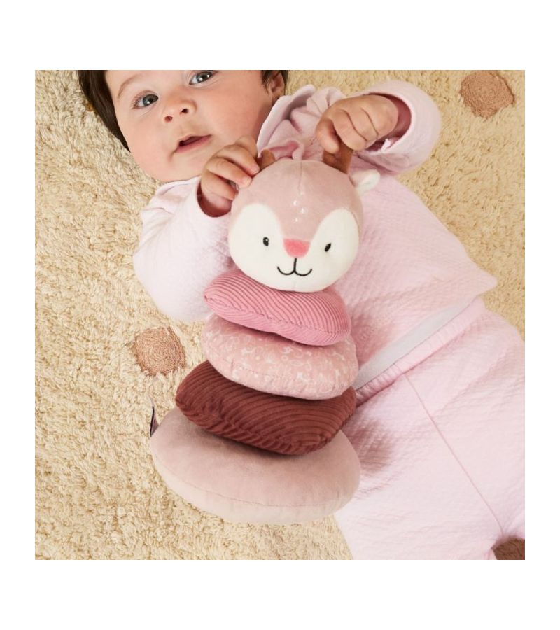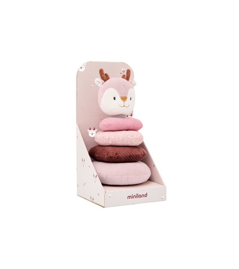 Το παιχνίδι στοίβαξης Ελαφάκι της Miniland είναι ένα πολύχρωμο βρεφικό παιχνίδι με κρίκους διαφορετικών μεγεθών και υφών και κουδουνίστρα ελαφάκι στην κορυφή.