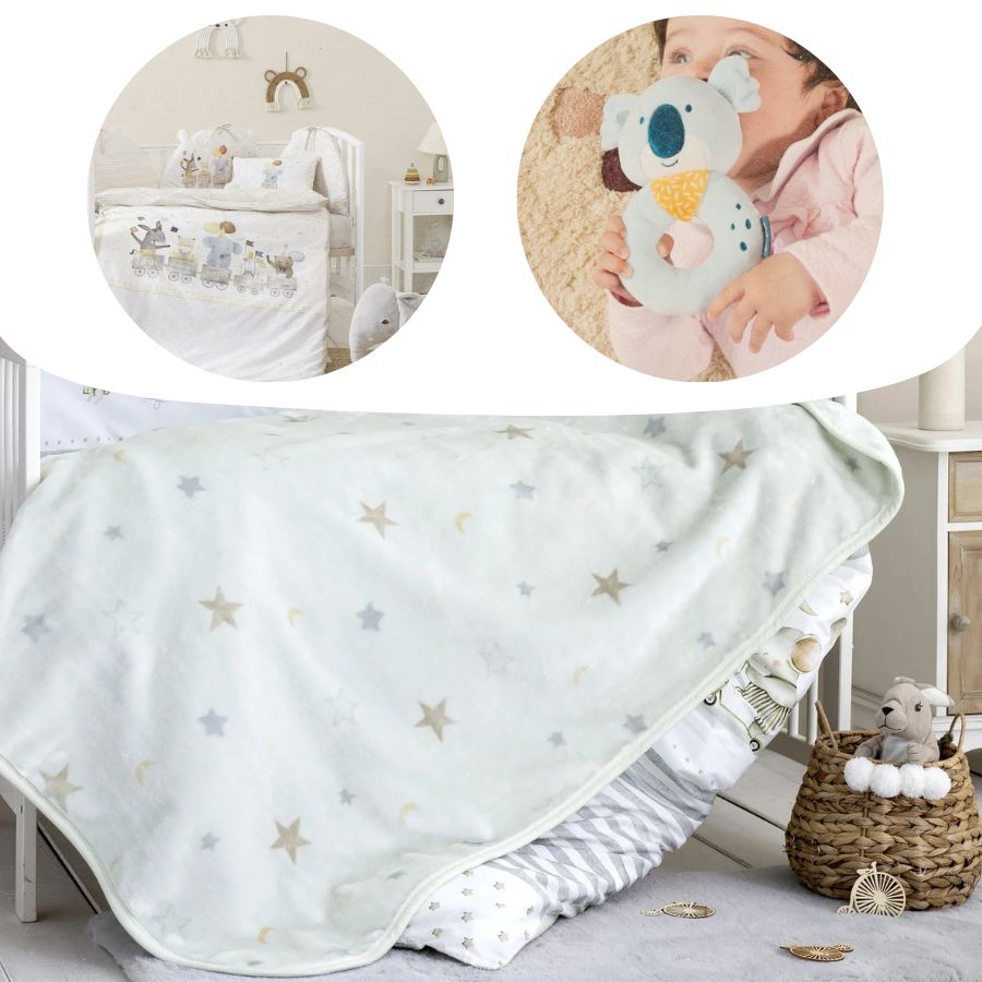 Σετ Δώρου για Αγόρι Κουβέρτα, Σεντόνια Λίκνου ΝΙΜΑ και Κουδουνίστρα Baby Koala
