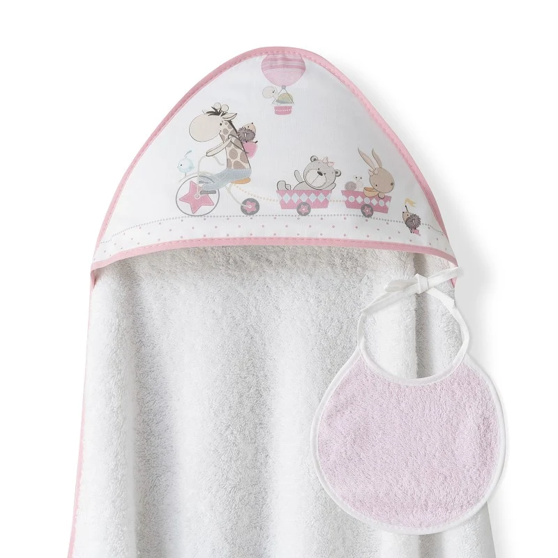 Interbaby Jirafa Bicicleta Μπουρνούζι Κάπα & Σαλιάρα White/Pink