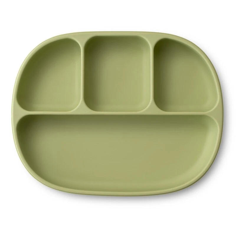 Interbaby Αντιολισθητικό Πιάτο Σιλικόνης Με Θήκες Και Καπάκι Olive Green