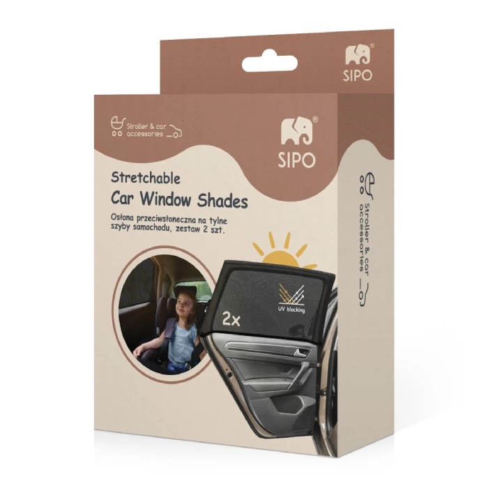 Sun Socks παραθύρων αυτοκινήτου Sipo (2τμχ.) που προστατεύουν το παιδί από τον ήλιο και τη ζέστη, προσφέροντας σκίαση, δροσιά και ιδιωτικότητα σε κάθε διαδρομή.