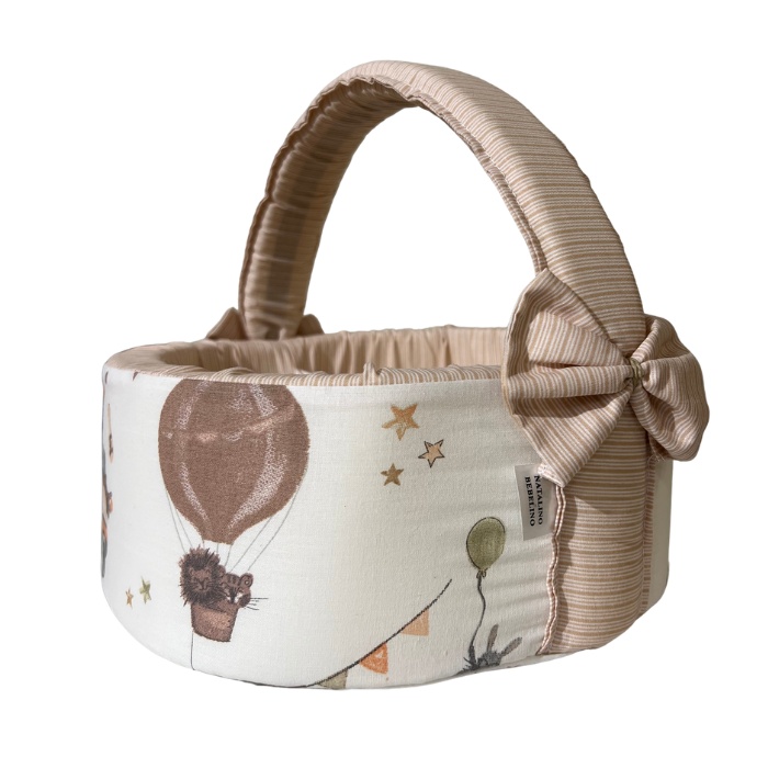 Υφασμάτινο στρογγυλό καλαθάκι για τα καλλυντικά, τις πάνες, τις κούκλες ή τα αξεσουάρ του μωρού.