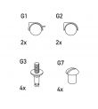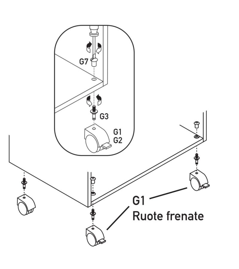 Περιλαμβάνει 4 ρόδες, από τις οποίες 2 με φρένο, καθώς και τις βίδες που χρειάζονται για την τοποθέτησή τους.