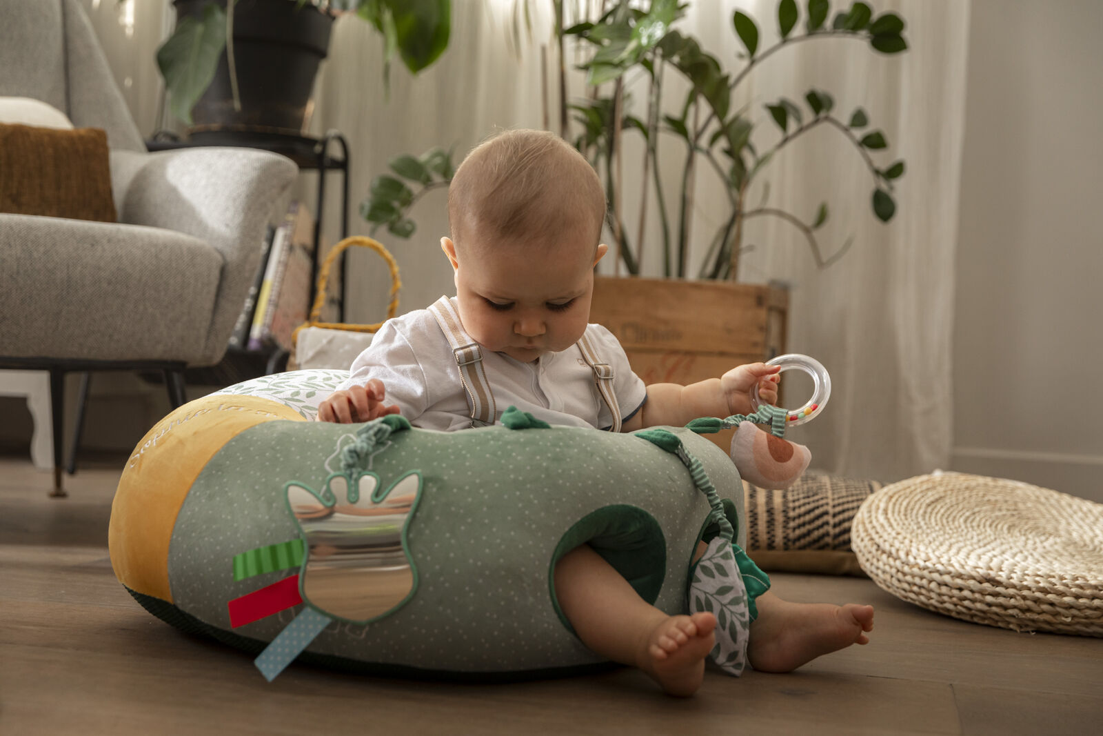 Το πρώτο παιχνίδι σε μορφή "καθίσματος" που συνδυάζει άνεση, διασκέδαση και διεγείρει και τις 5 αισθήσεις του μωρού.