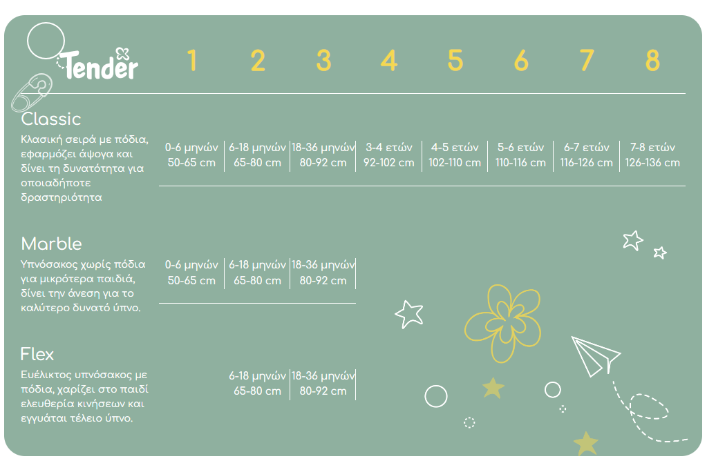 Ο υπνόσακος Marble της σειράς Tender σχεδιάστηκε για να προσφέρει στο παιδί σας έναν άνετο, ασφαλή και σταθερά ζεστό ύπνο κατά τους χειμερινούς μήνες.